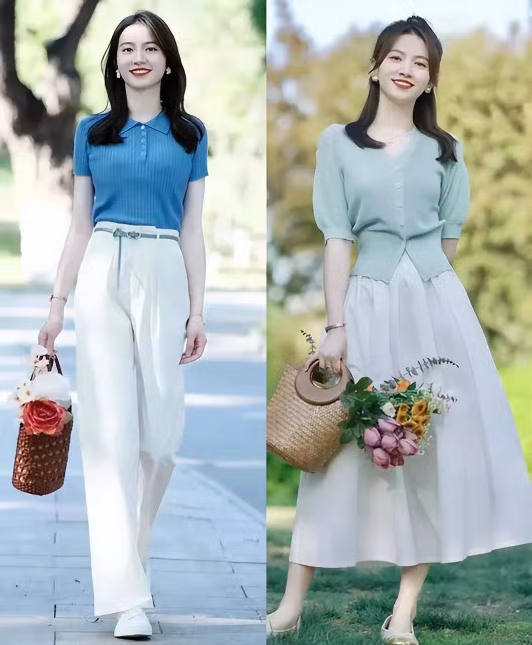 看了氣質女人的穿搭才發現,夏天不穿t恤,這樣搭配才更優雅