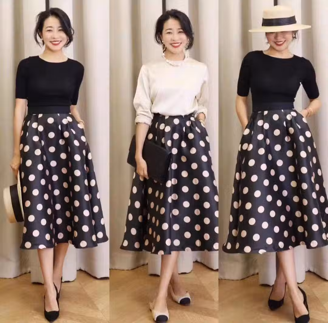 中年女性可以多採用塞衣角,形成「上短下長」的視覺效果,從而達到對身材比例的優化,但小個子女性可能擔心褲腳過長的話,會顯得風格比較拖沓。