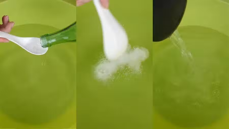 最後我們再試試第三種方法:醋+洗衣粉+溫開水