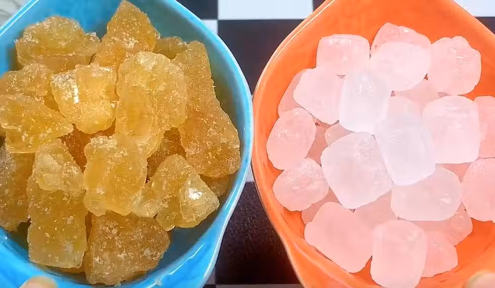 白冰糖則是在黃冰糖的製作工藝基礎上面加於脫色和去除了更多的雜質,精煉而成的一種冰糖。