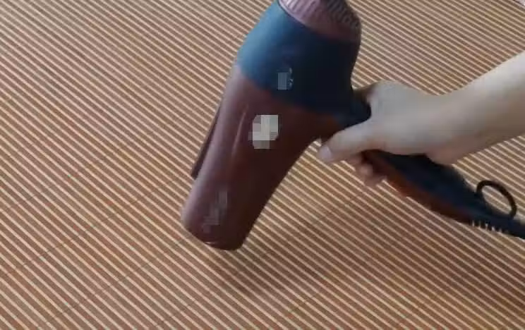 最後用吹風機打開熱風擋。把涼席吹一遍。這樣既能吹乾涼席,還能夠去除蟎蟲。