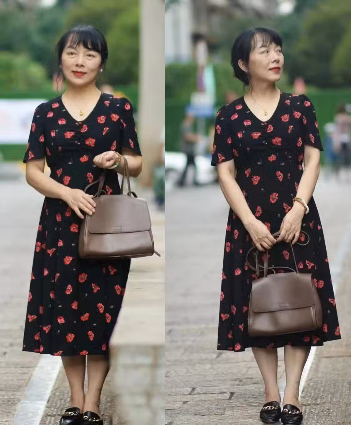 人到中年以後,長裙會得到她們更多的喜愛,可以構造出更端莊成熟的氣質,但如果身高不夠的話,在選擇裙子款式時一定要注意一點,那就是裙擺下一定要露出腳踝,才能起到對腿線的拉伸感。