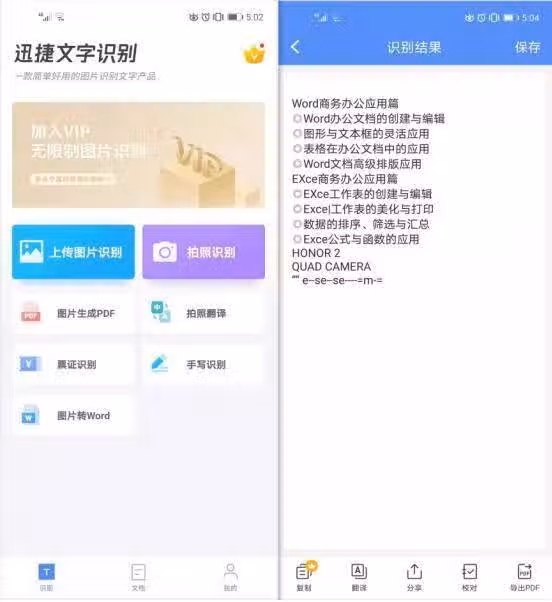 不僅支援上傳圖片識別,還能拍照識別照片上的文字,識別之後可以生成文檔,也能生成PDF模式。
