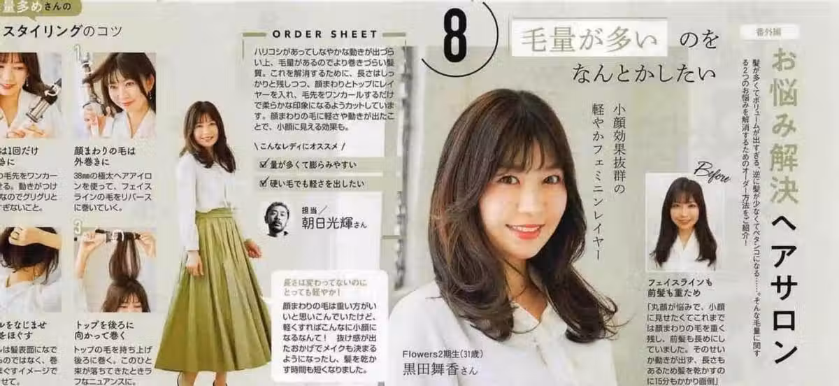 像這款八字劉海,它就會讓發際線的位置具備一定的拱度,短寬臉的女性駕馭,幫助她們輕松調整面部比例。採用z字形的手法劃分發縫,讓頭部的線條「隱形」,發絲則會看起來更為濃密一些。