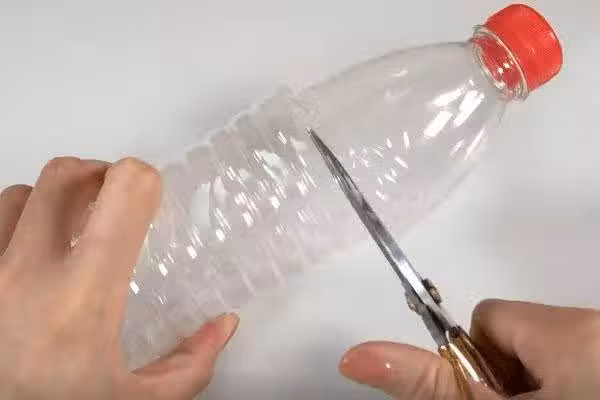 然後準備一個塑料瓶,用剪刀在塑料瓶1/3處剪一刀,剪成這樣就可以了,