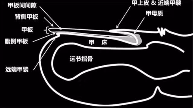 月牙其實就是甲母質產生的角蛋白細胞,角蛋白的生長中間是最快的,兩邊比較慢,因此形成了月牙的形狀。剛產生的白色角蛋白,會推著老的角蛋白不斷地往前生長,而老的角蛋白細胞會變得越來越硬,逐漸死去,這也是為什麼我們剪指甲時不會覺得痛的原因。