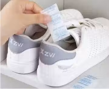 ①將乾燥劑放在鞋子裡一晚上, 可以吸走裡面的濕氣,讓鞋子變得乾燥舒服,同時 還能帶走鞋子裡的臭味,治療腳臭。