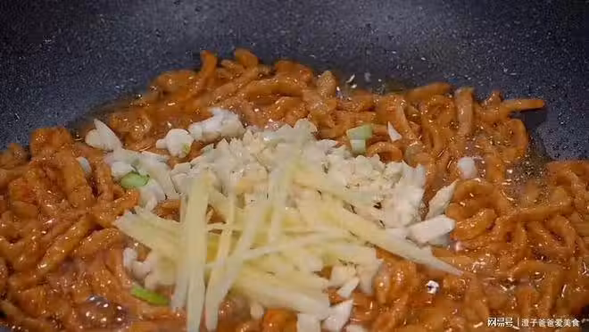 3. 一塊去了皮的生薑,切成姜絲,一把小蔥,切成蔥花,大蒜切成蒜末。碗中加入食鹽,再來一勺雞精,半勺的白鬍椒粉,再加入一勺白糖,在碗中再加入一勺生粉,然後加入半碗清水,用勺子攪拌均勻,攪勻以後放在一邊備用。