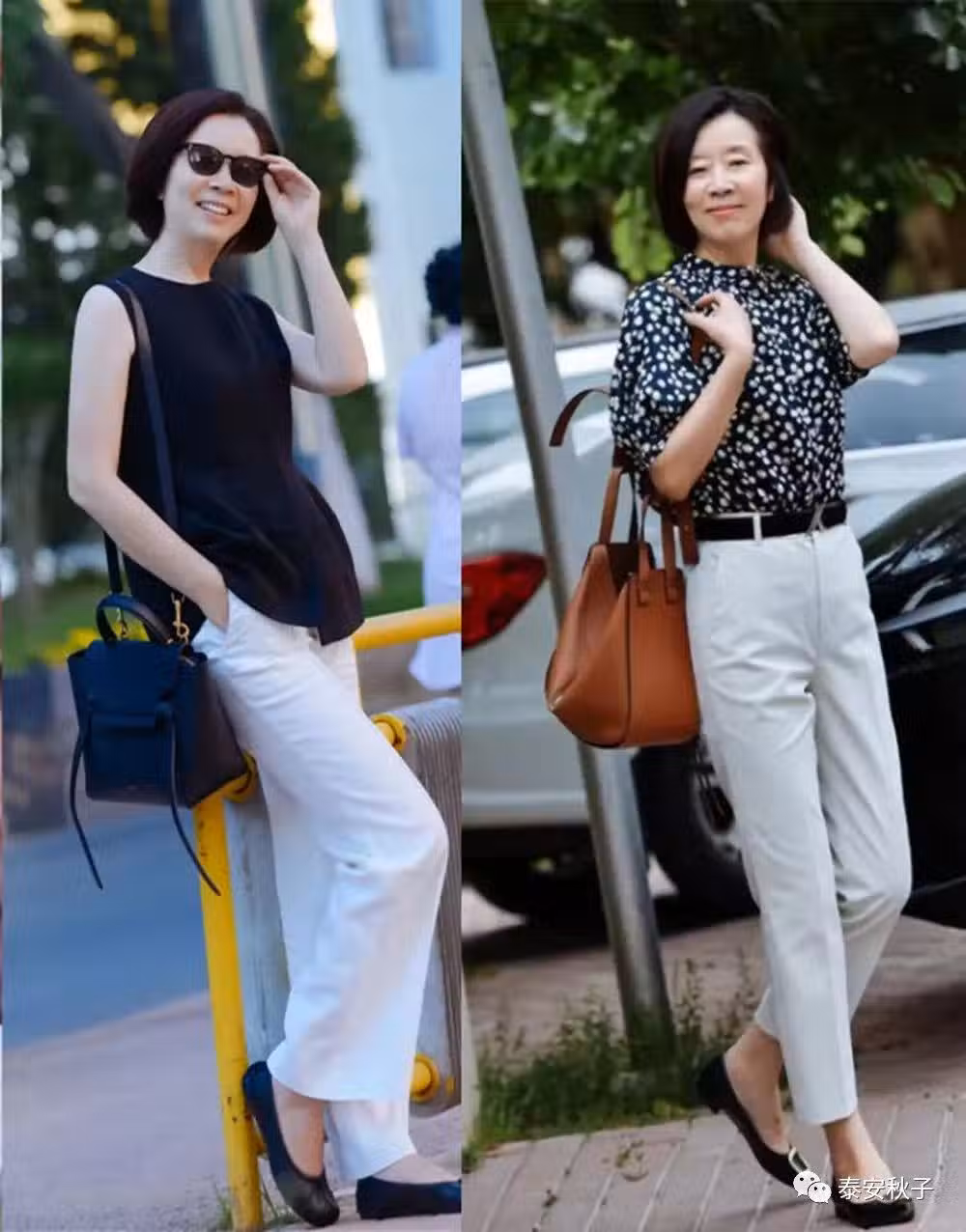 簡潔幹練、有舒適寬鬆度的高腰修身褲,可以與微寬鬆版型的小衫相互加持,展示出中年女子那獨到的分寸感。