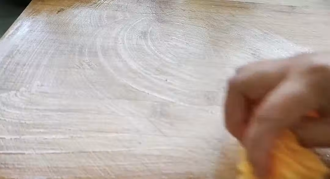 然後把案板包起來放在那裡,放置24小時之後,這個食用油就會被吸進案板裡邊,這樣我們的案板不管用多久,再也不容易發霉,再也不容易開裂了。