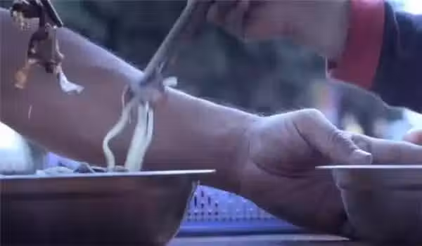 兒子泛著笑意說:「好」, 卻不拒絕父親給他夾牛肉。 而是, 等到父親開始吃面的時候, 他才默不作聲地把剛剛那些牛肉通通夾回父親的碗裡, 動作十分熟練, 一看就是做慣了。
