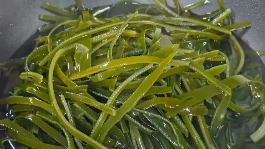 期間要用手輕輕搓洗幾次,讓鹽水充分滲透到海帶里。最後用開水焯一下海帶,這是讓海帶變得更加爽口和鮮亮的小技巧。