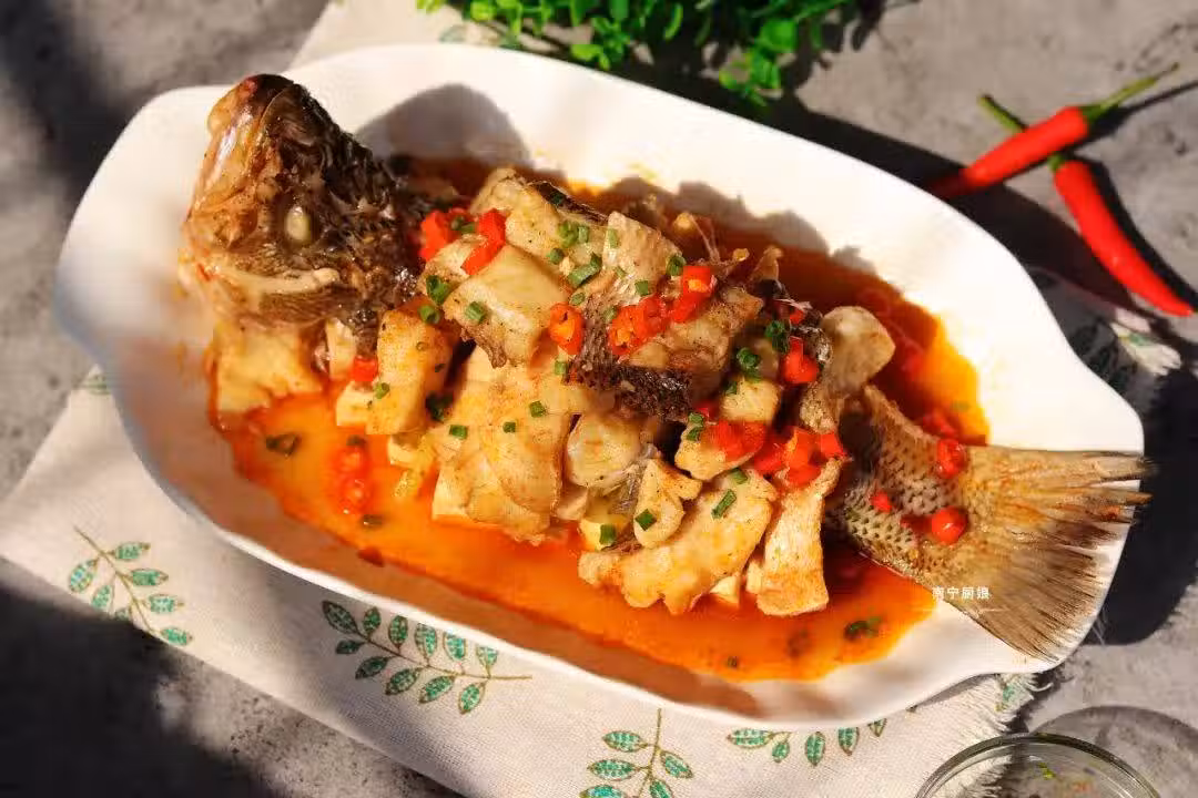 鱸魚本身的魚刺就很少,魚腥味也是各種河魚當中比較淡的,放在鍋里燉煮10分鐘就剛剛好熟透。