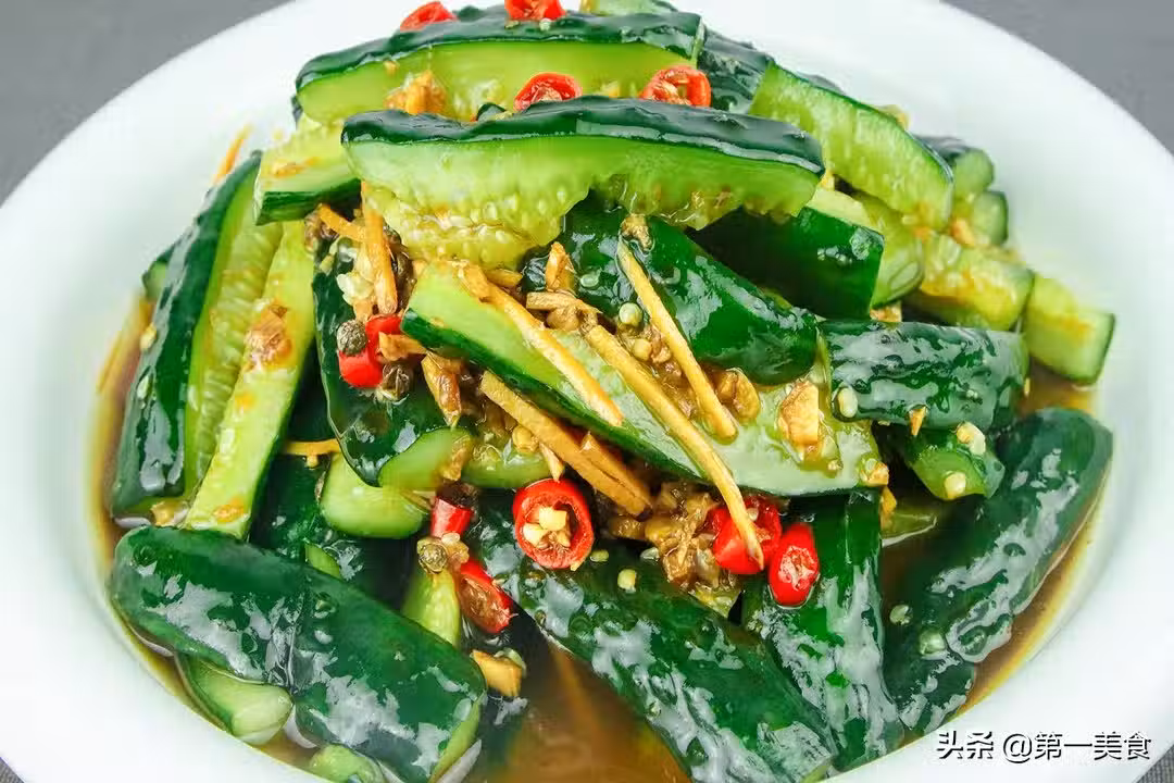 黃瓜腌好以後,倒掉裡面的水分,加入清水多洗幾遍。然後把黃瓜放在紗布中,用力擠壓出水,讓黃瓜更口感更脆。
