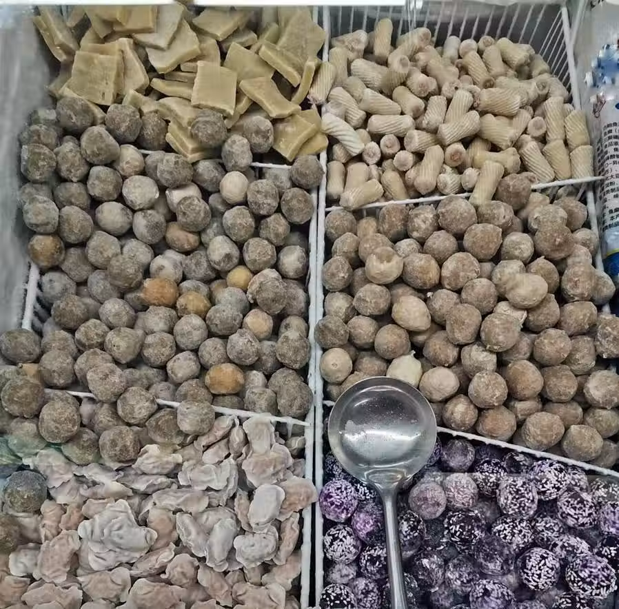 人們除了到外面的火鍋店去吃火鍋,更喜歡在家中自己做火鍋。除了各式肉卷,配料也會直接選購這種散裝的火鍋涮料,特別是肉丸、魚丸、蟹肉棒、海鮮角、撒尿牛丸等。 與散裝水餃、餛飩的情況差不多,這些散裝火鍋涮料,除了直接暴露在空氣中之外,最令人擔心的還是食品衛生安全與肉食質量情況。