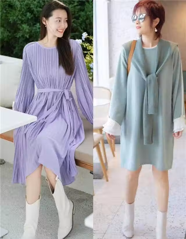 最近火了一種穿搭叫:連衣裙+裸靴,今年早秋這麼穿,洋氣又顯瘦