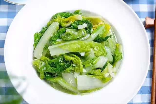 小白菜洗凈之後,掰成幾段,蒜蓉切好,接下來準備好鍋子,來炒制。鍋內倒油燒熱後,爆香蒜蓉,接著加上小白菜,開始不停翻炒,炒到變軟了以後,來點鹽、雞精、蚝油進行調味,就可以出鍋啦。