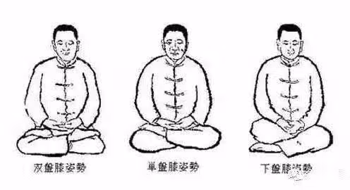 坐時把左腳小腿,架在右股上面,右腳放在左股下就得了。這比雙盤膝容易得多。它的缺點,是左膝蓋不能夠緊貼坐墊,入坐稍久,身體要向左邊歪斜;只要你自己覺得歪斜,慢慢改正,也沒有妨礙的。