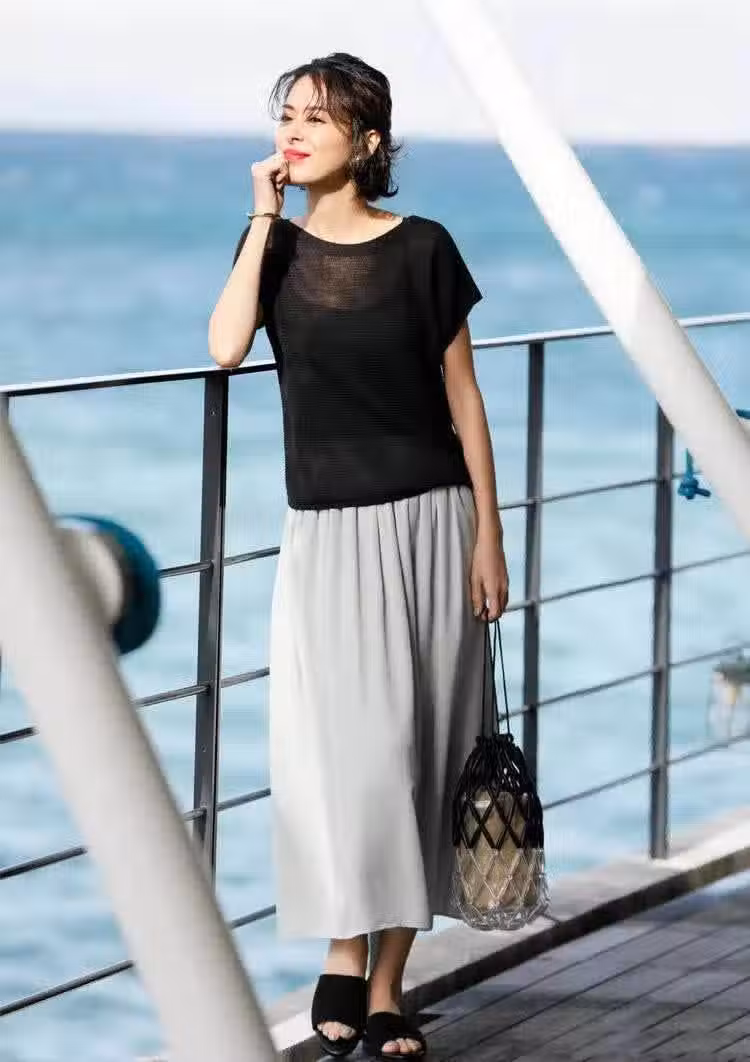 同樣地,它也可以達到遮肉顯瘦的效果,輕薄的材質根本不用考慮塞衣角問題,就這樣輕鬆自然的狀態就特別美。