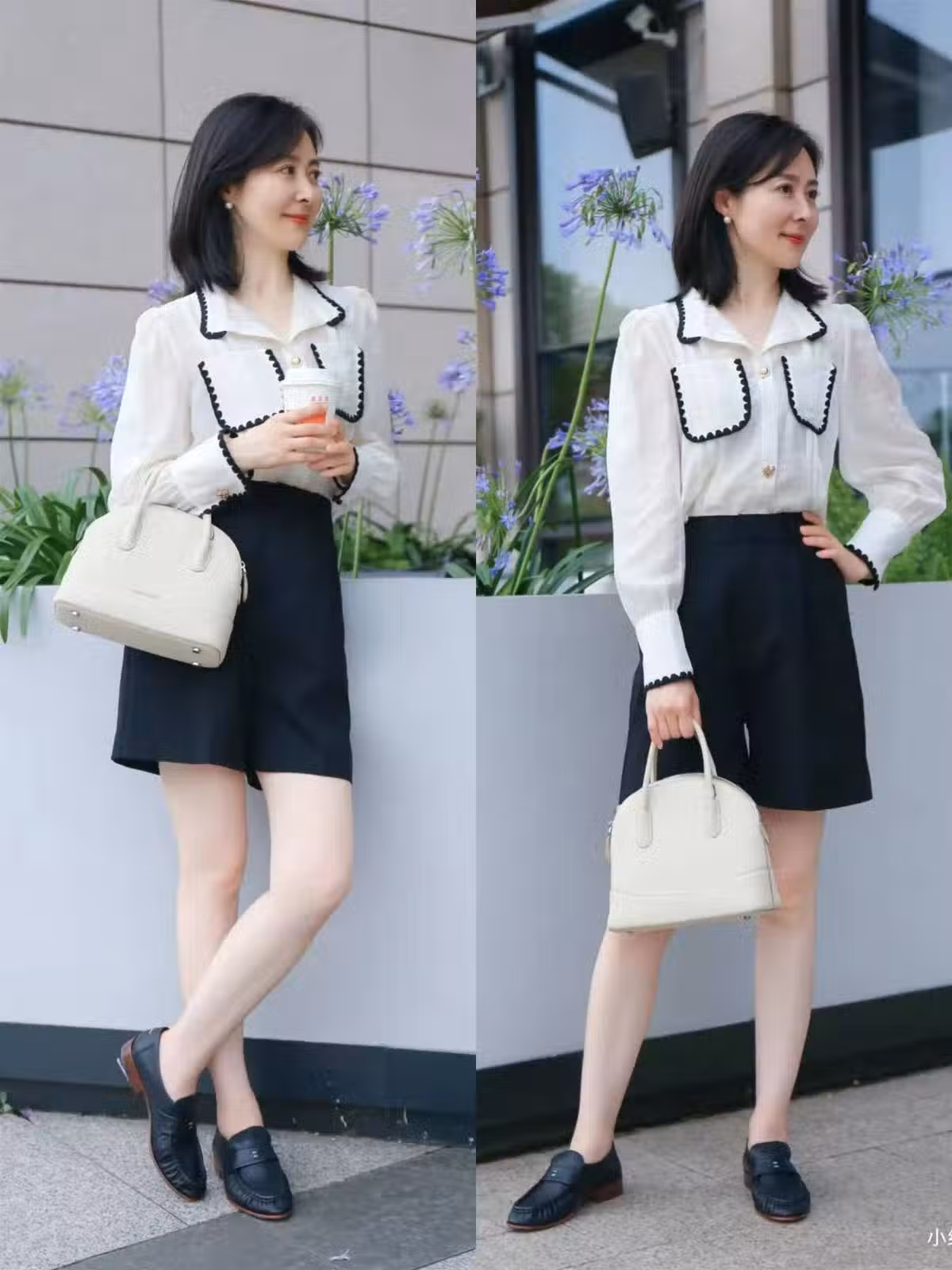別說是教書育人有涵養的女教師了,就算真的是頂級名流或者是真正的富家太太,也都是很難穿出高級美感的,所以與其冒險,不如直接選擇博主身上這類模板,簡單清爽又不違背教師形象。