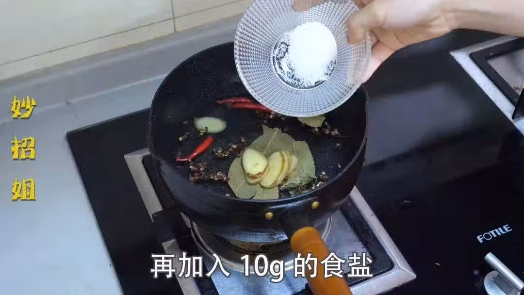 白糖攪拌溶化後,我們再把香葉和薑片夾掉,然後讓湯汁晾涼