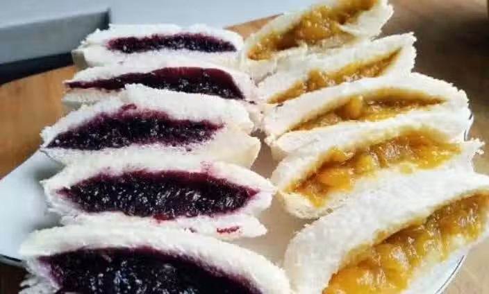 果醬麵包:這種麵包是如今非常流行的一種美食,不管男女老少都非常的喜歡,麵包中包著美味的果醬,吃上一口非常的鮮美,雖然裡面是貨真價實的果肉,但是它卻含有各種食品添加劑,這樣才能讓果肉吃起來Q彈美味,如果你實在想吃果醬麵包的話,那麼小編建議大家在家自己自製吧,相信口感也會很棒的,當然在健康和衛生方面也會更加的放心哦,一般烘焙師和家人都是不買果醬麵包吃的,只有我們這些外行人,才會傻傻被坑。