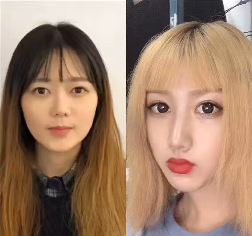 首先像這種黃頭髮亮度比較高,明度也很高,一般來說這種亮度越高的發色越容易顯得氣質廉價,不高級,尤其是這種半黃半黑的發色,看上去視覺上有種臟髒的感覺,整個人的氣質也會隨之拉低,就算顏值高,也不一定能夠hold得住這種發色。