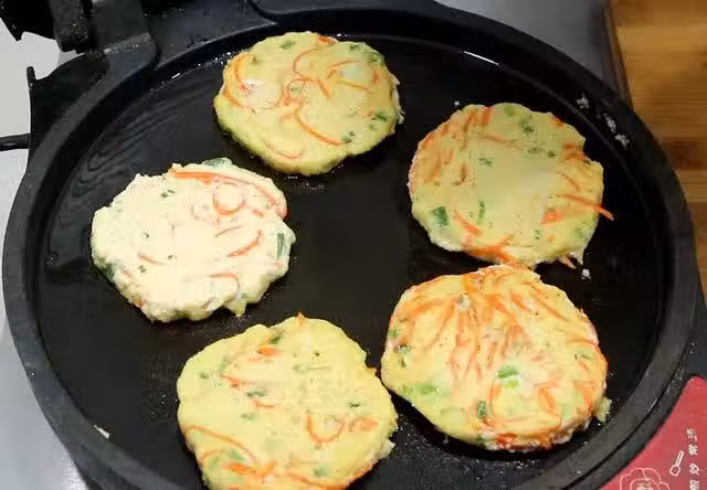5.來回多翻幾次面,讓豆渣餅均勻受熱,豆渣餅煎至兩面金黃後,把周圍也貼在鍋內煎黃即可,剩餘的麵糰都按此方法煎好,美味即成。