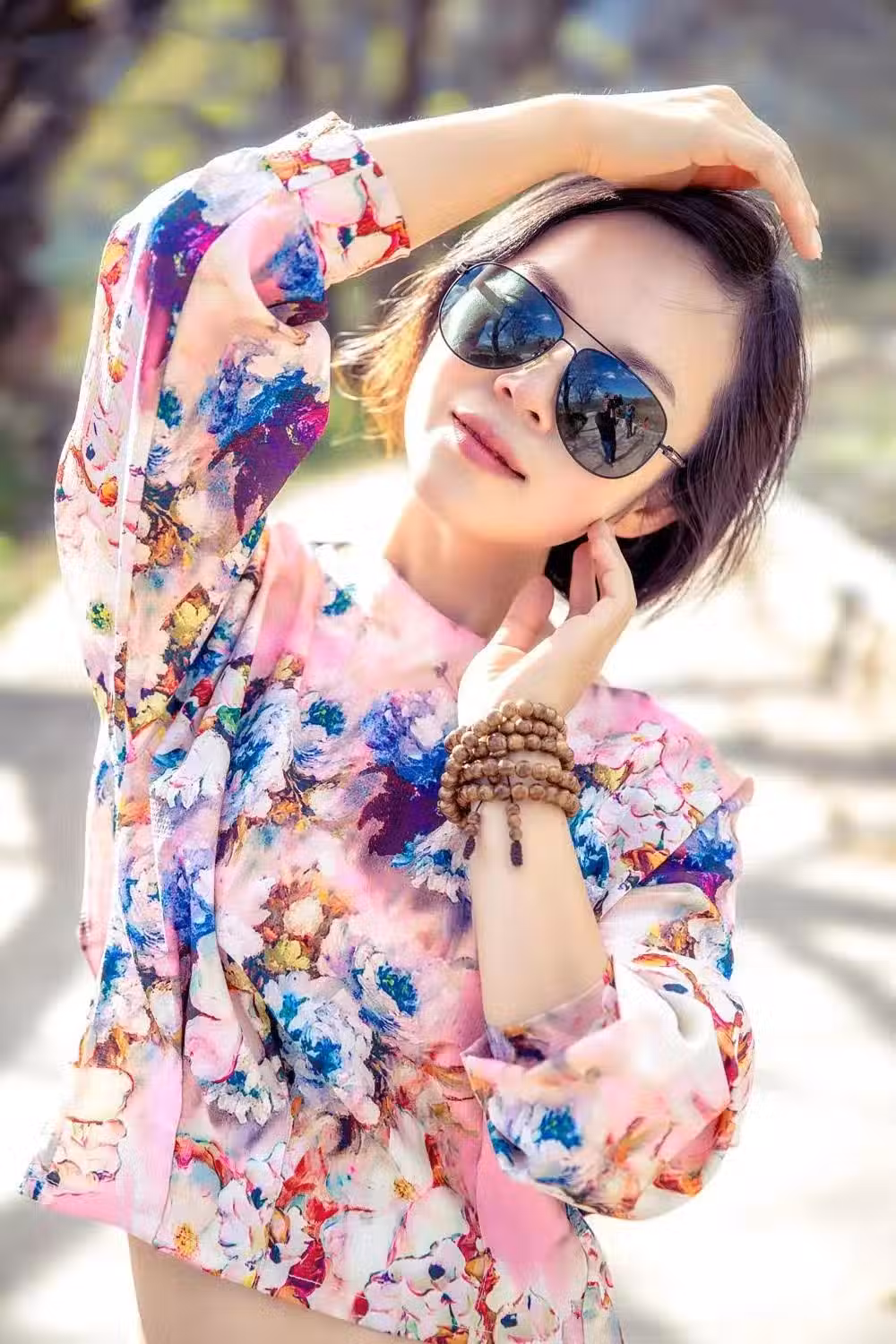 中年女士拍照,可以很好地利用自己的手,比如可以抬手起來撫摸自己的臉,這樣可以引導大家視線到你的臉上,歪歪頭看鏡頭或者另一手拿花之類的,這樣怎麼拍都美美的。