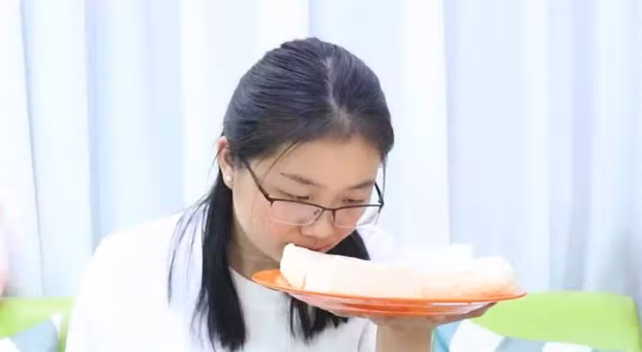 我們來聞一下。如果說是優質新鮮豆腐,大家都知道豆腐是用豆子做的,肯定有一種豆香味,證明這樣豆腐就非常的好