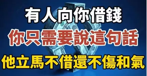 有人向你借錢時 第一句話不要問借多少!而是要這樣回答 他不但立馬不借 還不傷和氣~