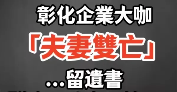 彰化企業大咖「夫妻雙亡!」留遺書「先把3孩處理掉了...」