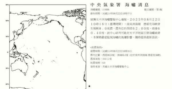 快訊/爆發8.0強震!氣象署發布「海嘯警報」