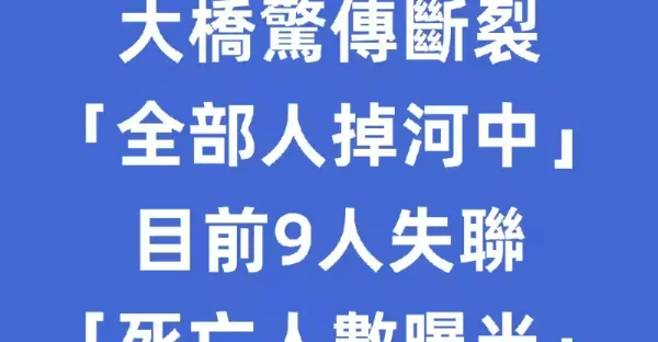 快訊/大橋驚傳斷裂「全部人掉河中」!目前9人失聯「死亡人數曝光」
