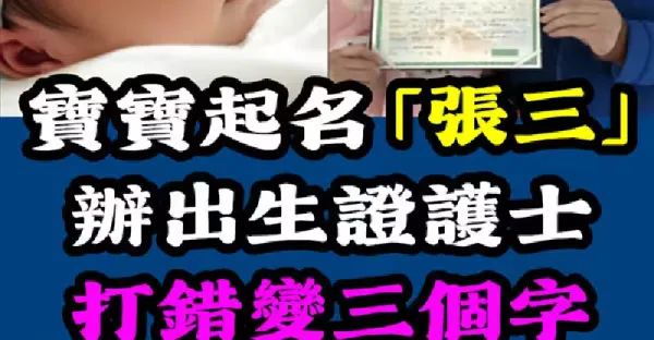 寶寶起名「張三」辦出生證護士打錯變 「三個字」 媽媽樂呼:太好了,不改了