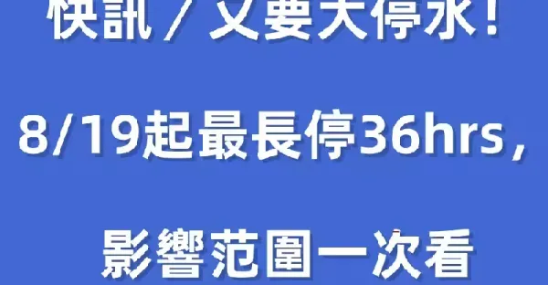 快訊/又要大停水!8/19起最長停36hrs,影響範圍一次看