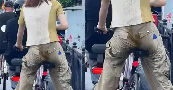 騎行美女褲子驚現「不明水漬」!眼尖網友發現「驚人細節」後,所有人都沉默了
