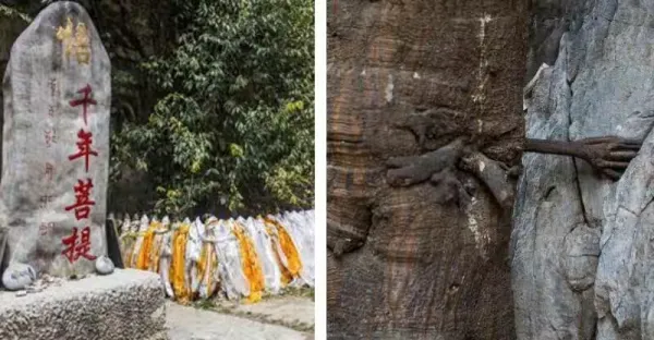 神明顯靈!千年菩提樹「一夜長出佛手」信徒搶著朝聖 5根手指「緊抓山壁」頻頻現神跡