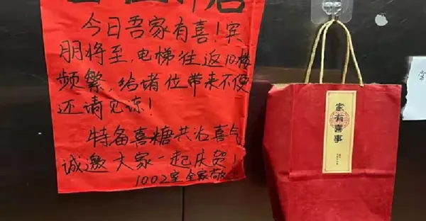 家有喜事!他在電梯「放一大包喜糖」分享喜悅 最後「竟收到兩張紙條回復」網贊爆:太有愛...