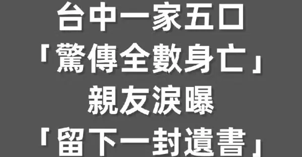 快訊/台中一家五口「驚傳全數身亡」!親友淚曝「留下一封遺書」死因曝光