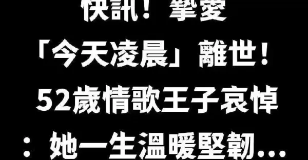 快訊/摯愛「今天凌晨」離世! 52歲情歌王子哀悼:她一生溫暖堅韌