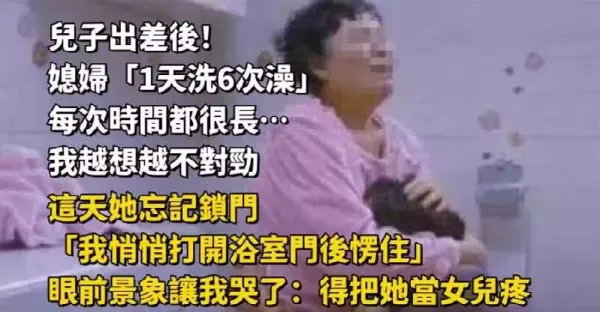 兒子出差後!媳婦「1天洗6次澡」每次時間都很長… 我越想越不對勁,這天她忘記鎖門「我悄悄打開浴室門後愣住了」眼前景象讓我哭了:得把她當女兒疼...