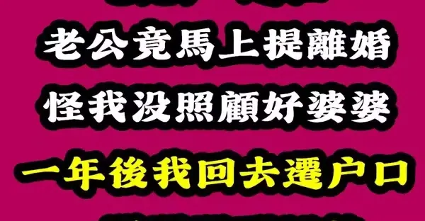 辭職照顧婆婆三年!婆婆一過世「老公竟馬上提離婚」怪我沒照顧好婆婆...「一年後我回去遷戶口」一開門哭到腿軟:難怪對我那麼狠!