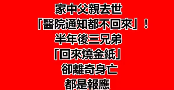 家中父親去世「醫院通知都不回來」!半年後三兄弟「回來燒金紙」卻離奇身亡:都是報應...