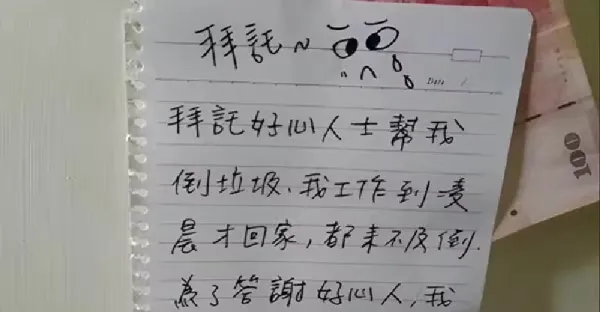 沒時間倒垃圾!她在門口「留紙條+百元鈔」請鄰居幫倒,隔天回家一看愣住了:是我太天真...