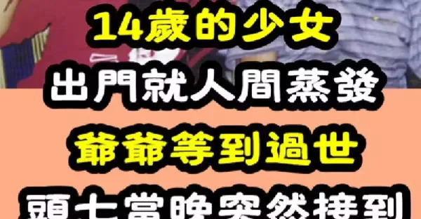 14歲少女「出門就人間蒸發」爺爺等到過世 頭七當晚「接到13通電話」家屬接起傻住了