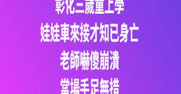 彰化3歲童上學! 娃娃車來接才知「已經身亡」老師嚇傻崩潰「當場手足無措」