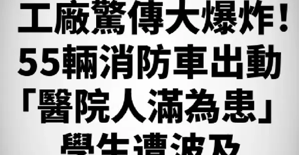 快訊/工廠驚傳大爆炸!55輛消防車出動「醫院人滿為患」...學生遭波及「緊急停課」