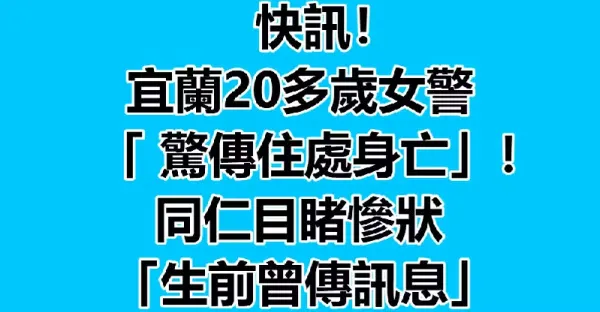 快訊/宜蘭20多歲女警「驚傳住處身亡」!同仁目睹慘狀:「生前曾傳訊息」!