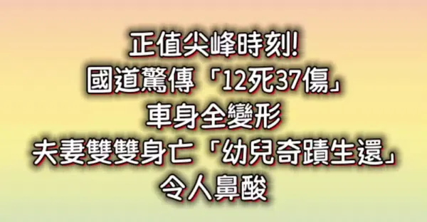 快訊/正值尖峰時刻!國道驚傳「12死37傷」車身全變形 夫妻雙雙身亡「幼兒奇蹟生還」令人鼻酸